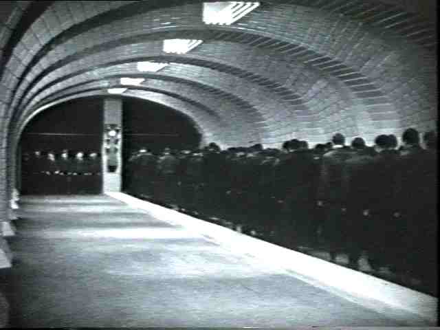 The hallway runs between the machines and the elevators to the Worker's City. Here, workers line up for the shift change.
